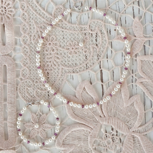 Adorable Pearl and Birthstone Jewelry Set in Silver