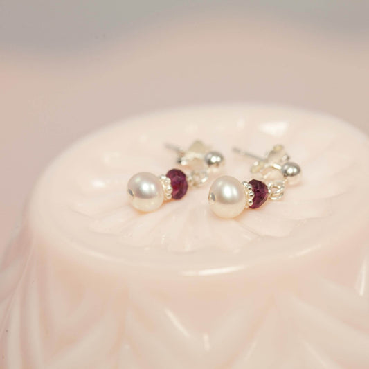 Adorable Pearl and Birthstone Dangle Post Earrings