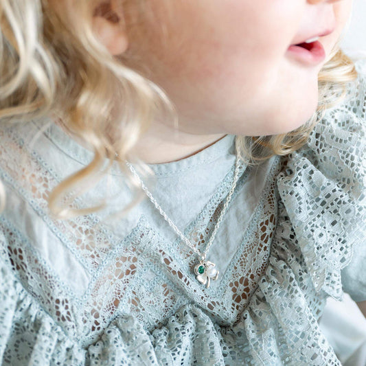 Lucky Clover + Sparkly Birthday Gem Necklace