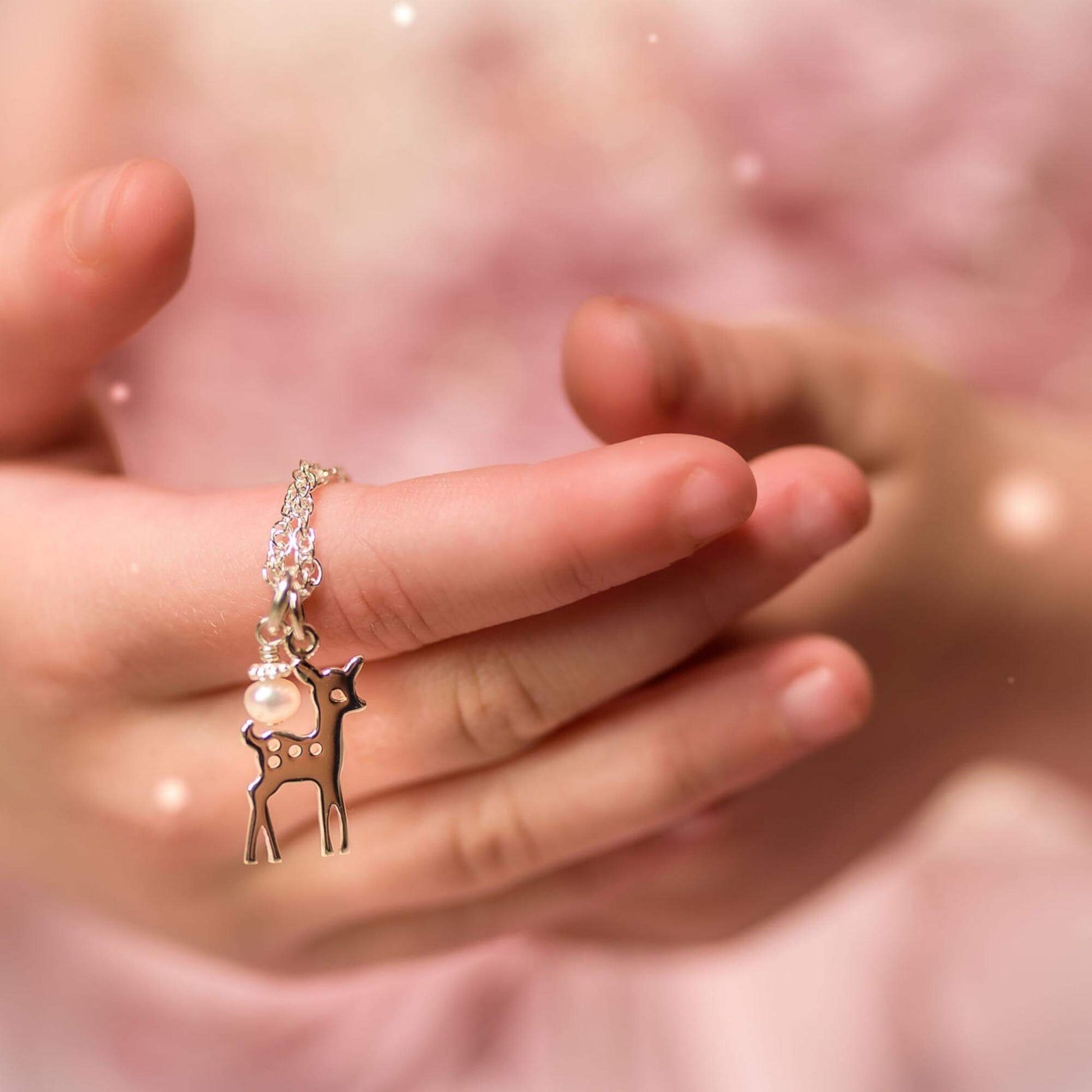As precious as your little one. She'll be so fawn'd of her new tiny deer necklace.