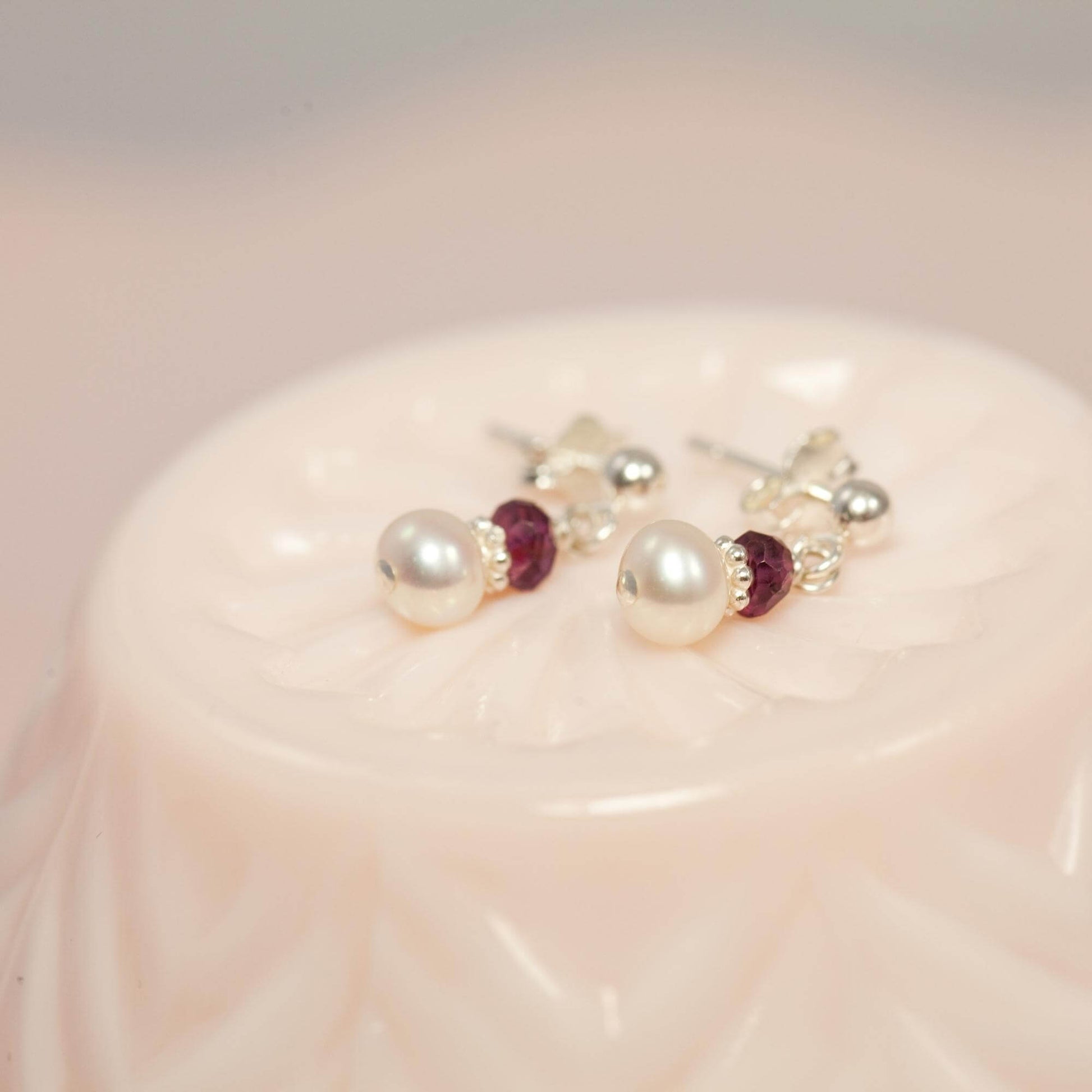 Adorable Pearl and Birthstone Dangle Post Earrings
