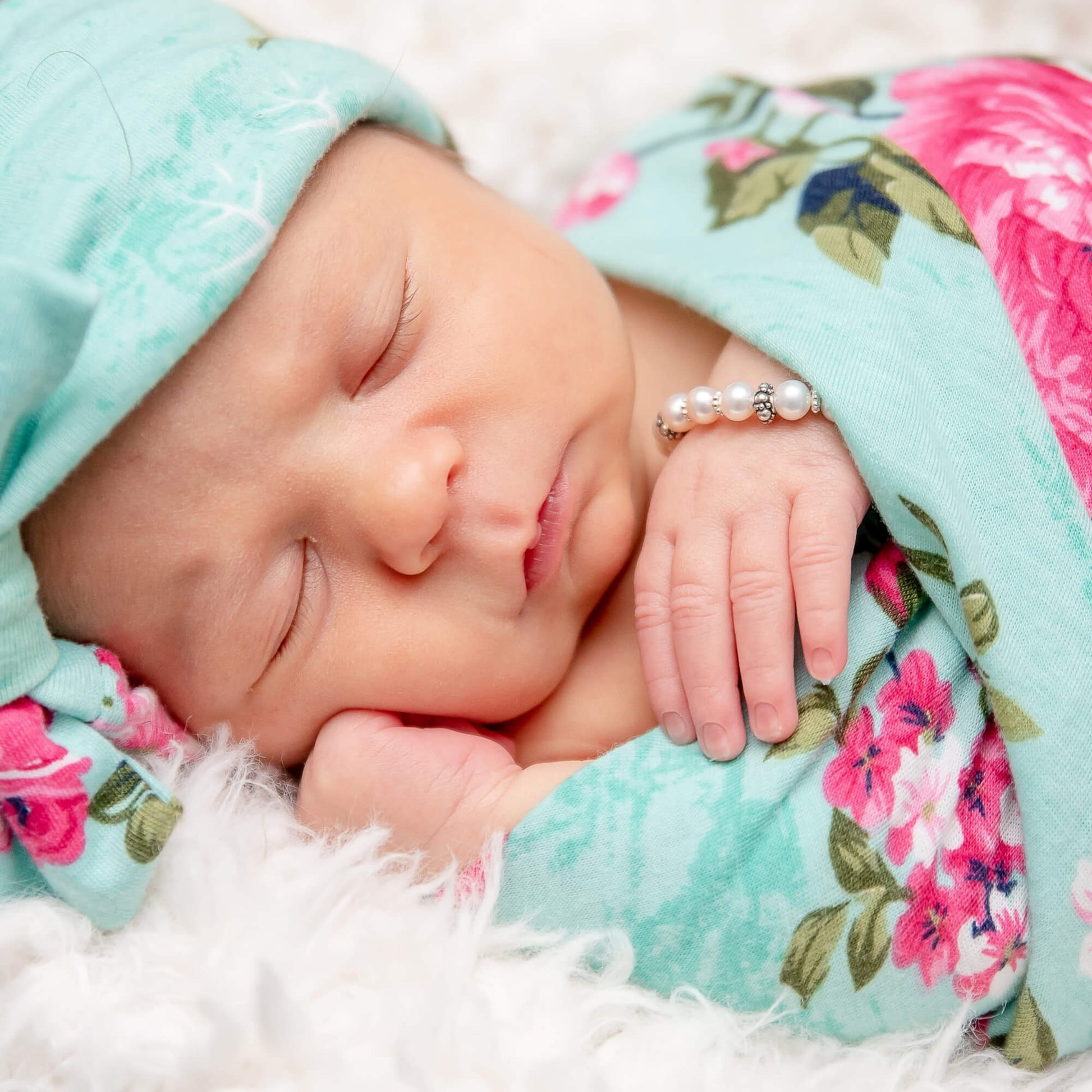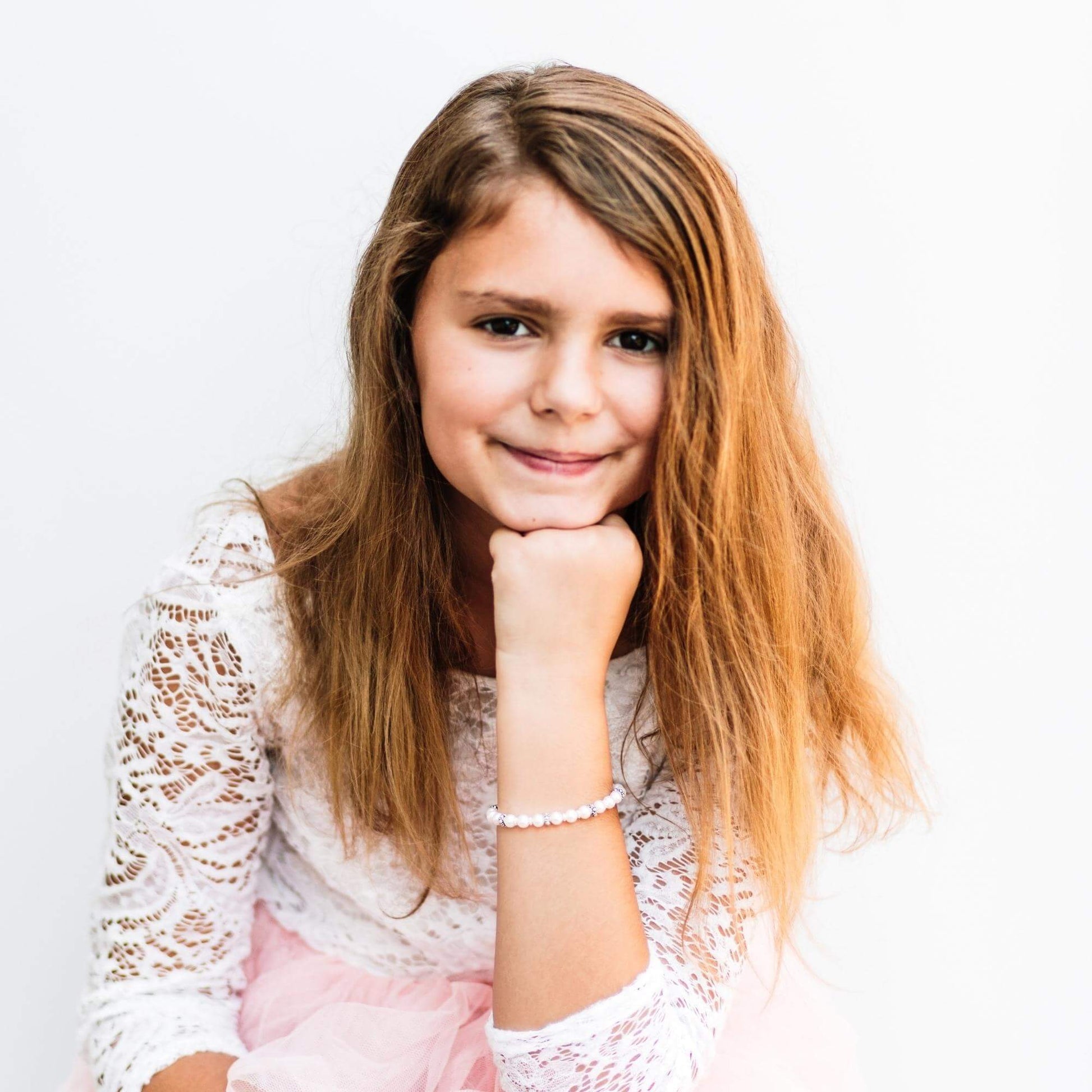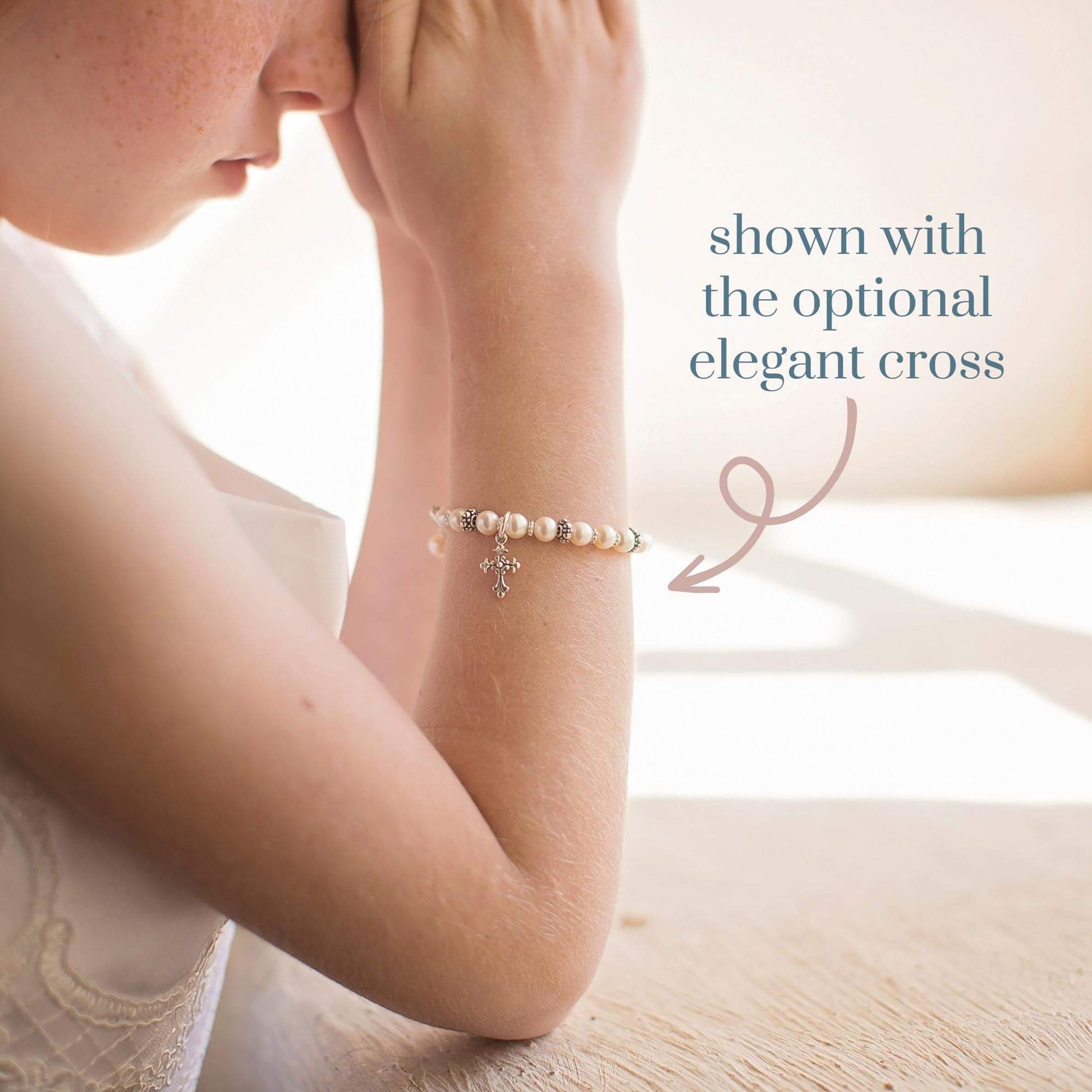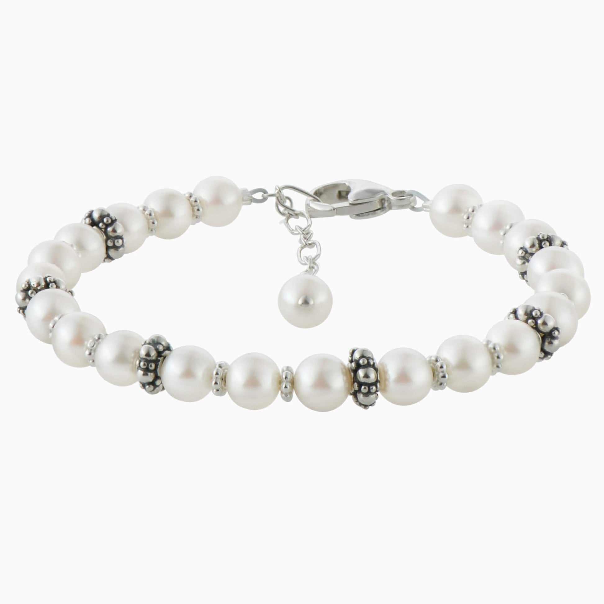 The Elegant Bracelet features lots of shimmer and shine. Twinkling silver daisies and fancy sterling bead accents make this a wonderfully sparkly piece, designed to catch the light and wake up your little girl’s smile.