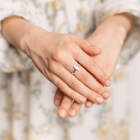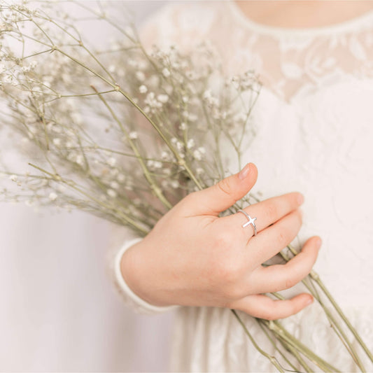 Tiny Silver Cross Ring for Girls