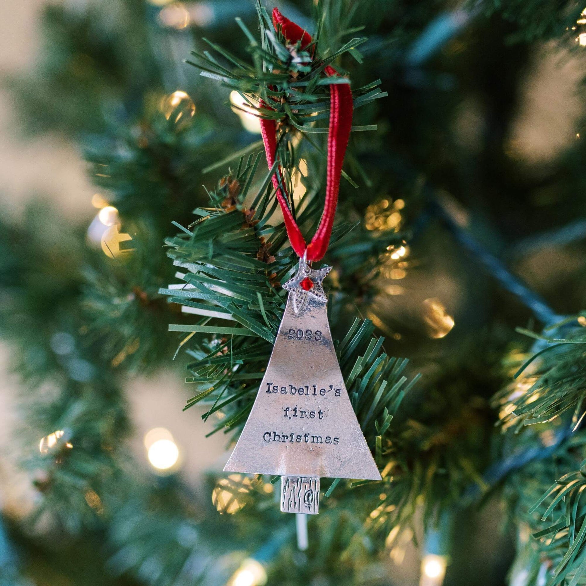 Please let me know below if you would like "Baby's" or a name. The name can be up to 8 letters long. If nothing is specified, "Baby's First Christmas" will be stamped.