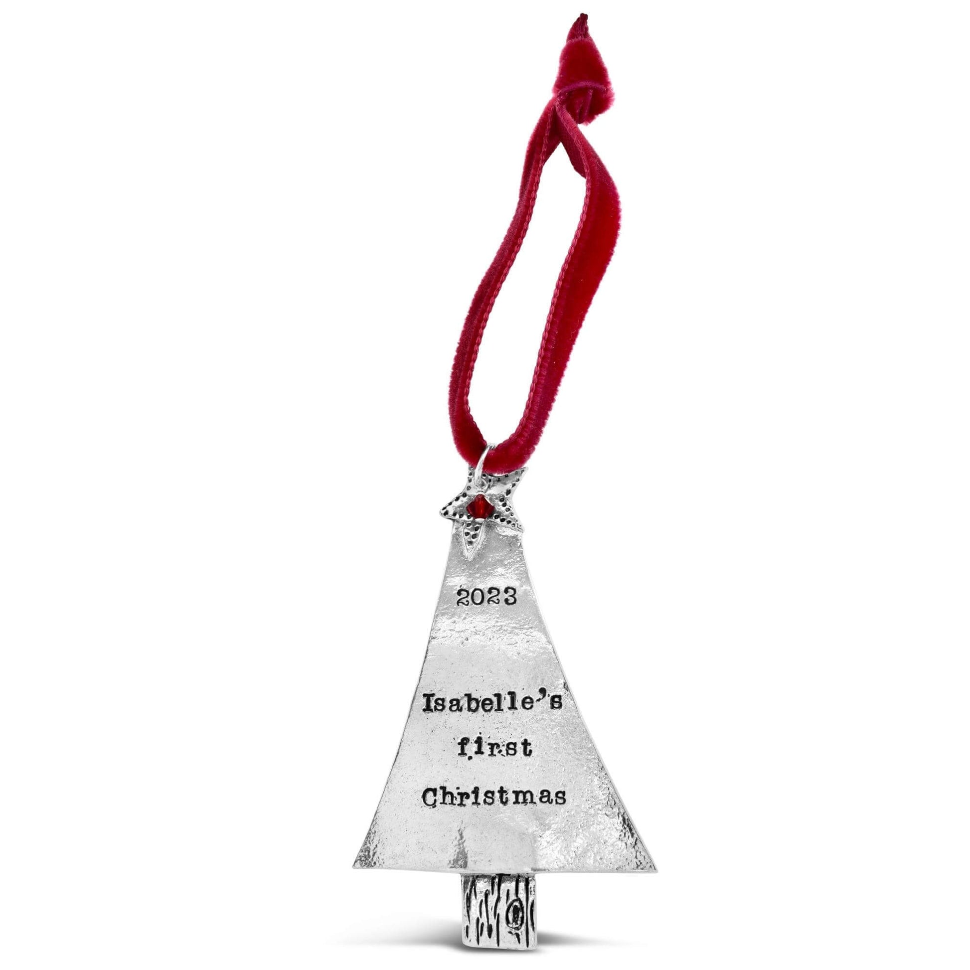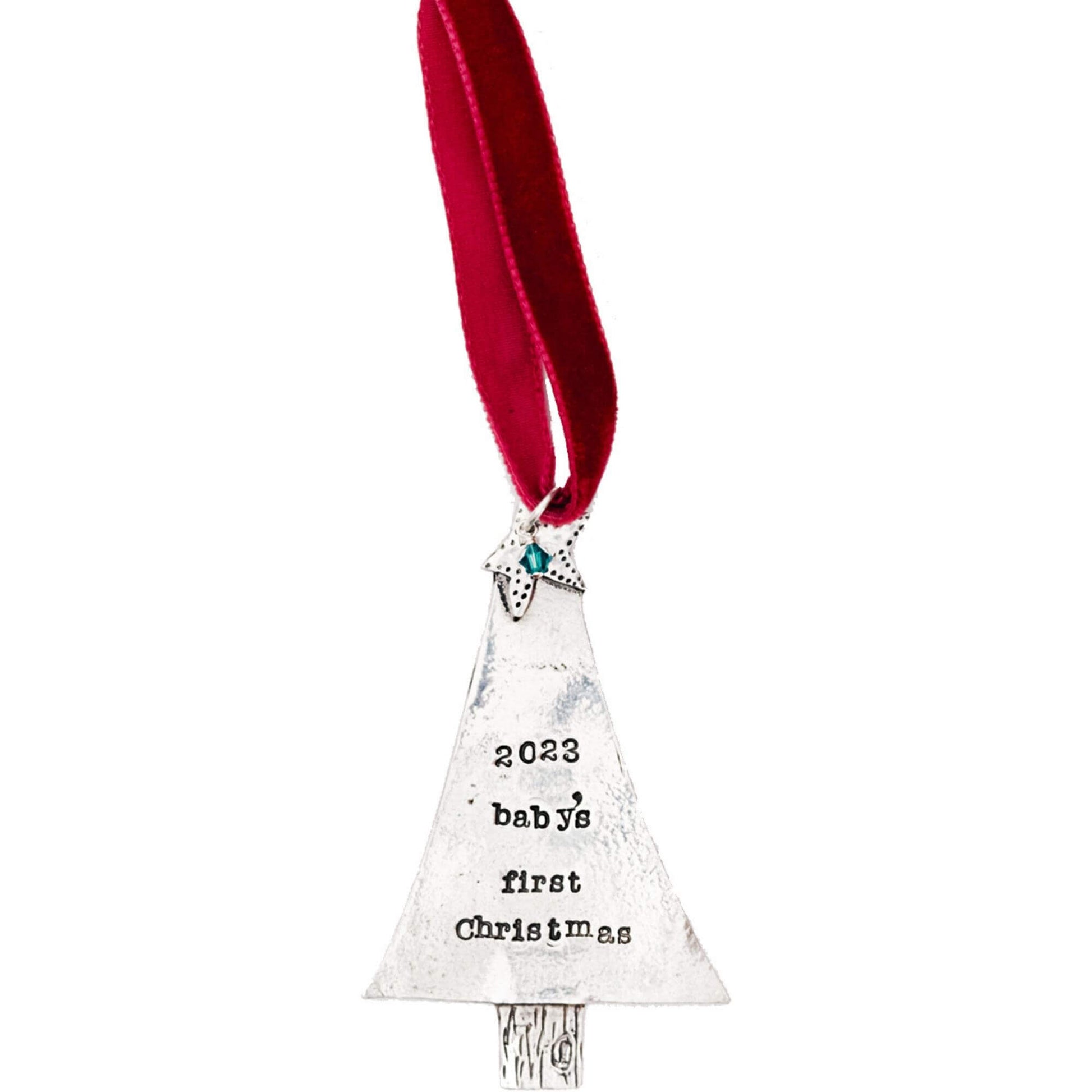 Her beautiful heirloom Baby's First Christmas tree ornament is topped with her very own Swarovski birthstone crystal - to celebrate when she joined the family. It hangs from a luxurious merlot Swiss velvet ribbon and comes wrapped up for safe-keeping in a gorgeously soft velvet pouch.