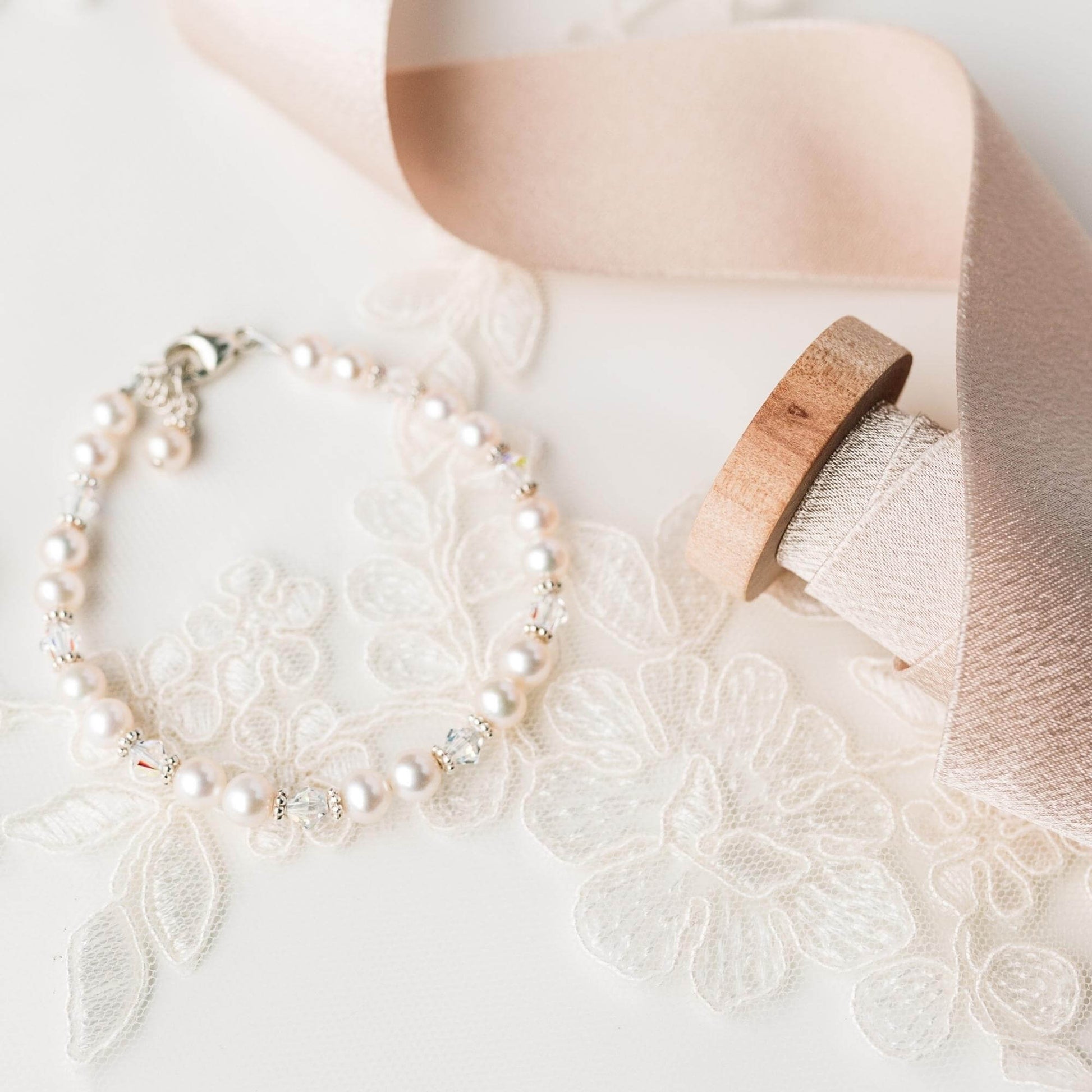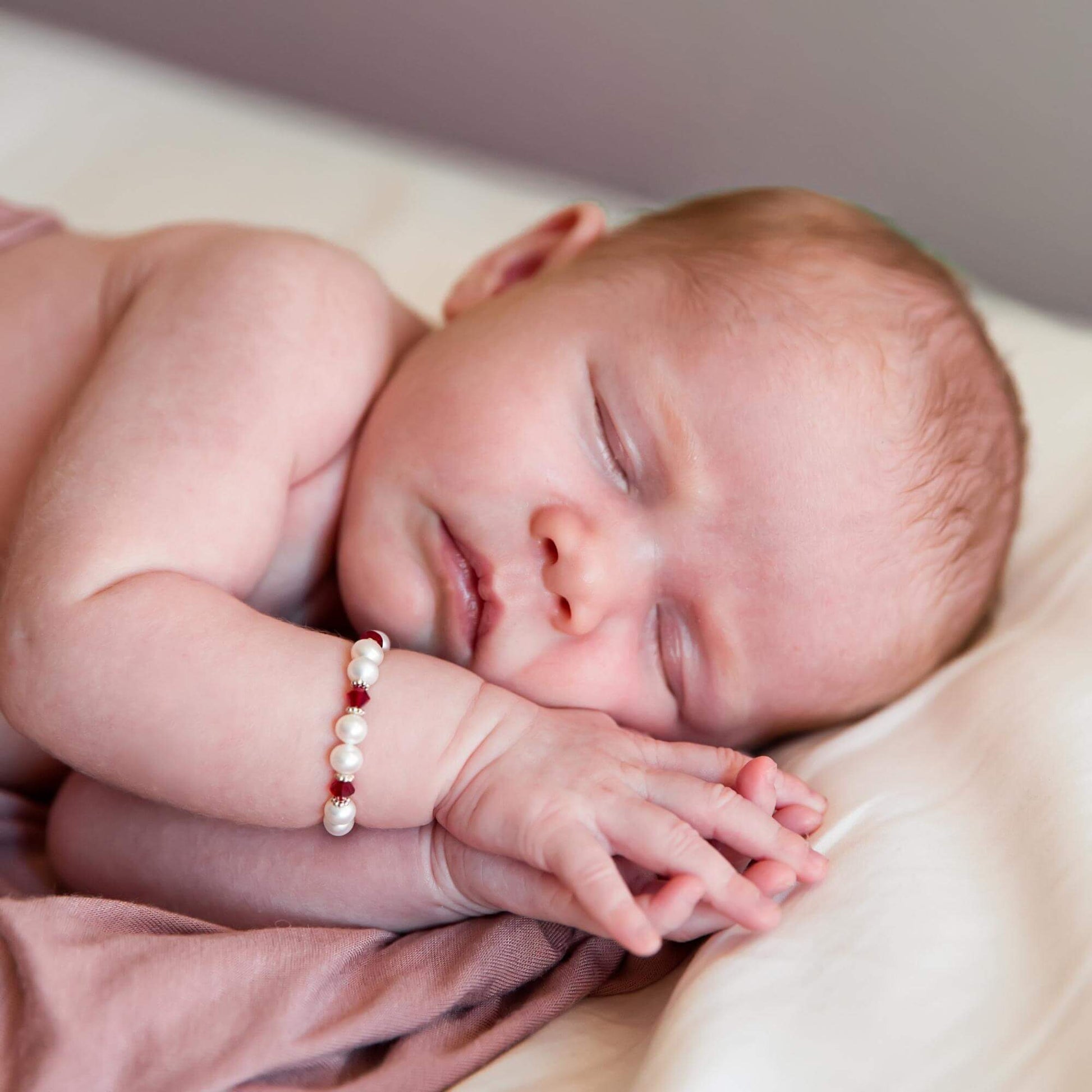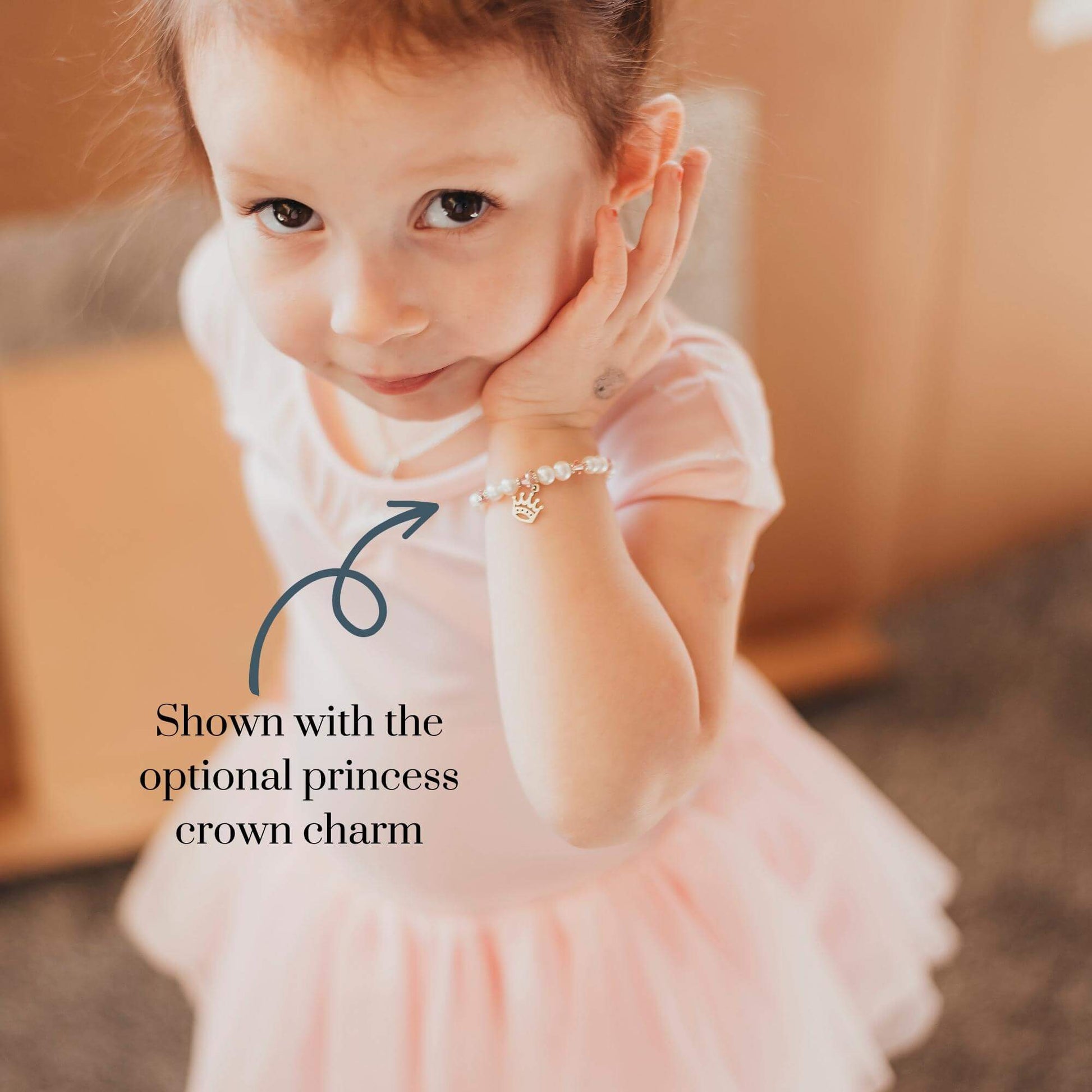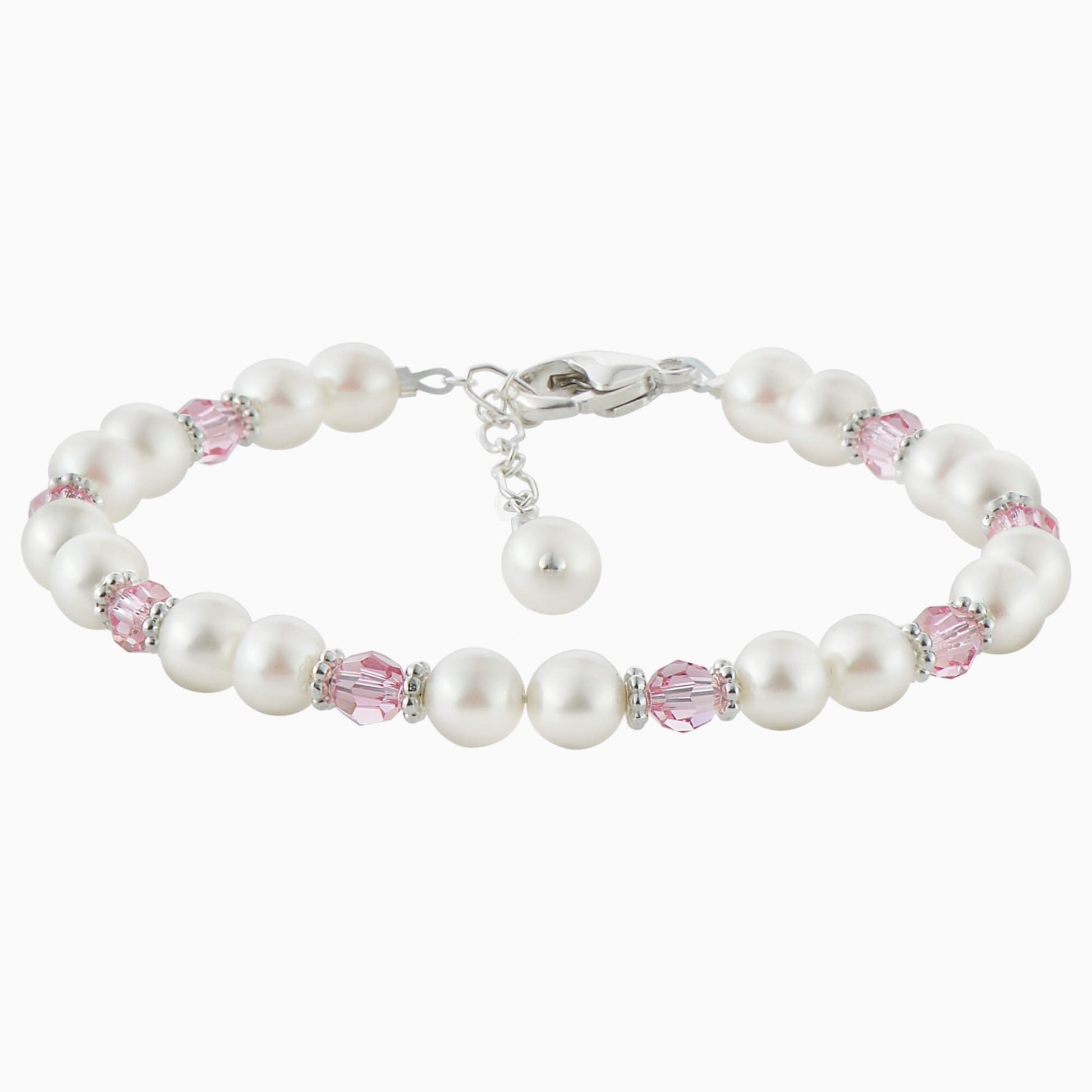 Pearls, and silver, and crystals...oh my! Her little face will light right up when she opens the jewelry box to find her pearl bracelet, sparkling with her very own Swarovski birthstone crystals.