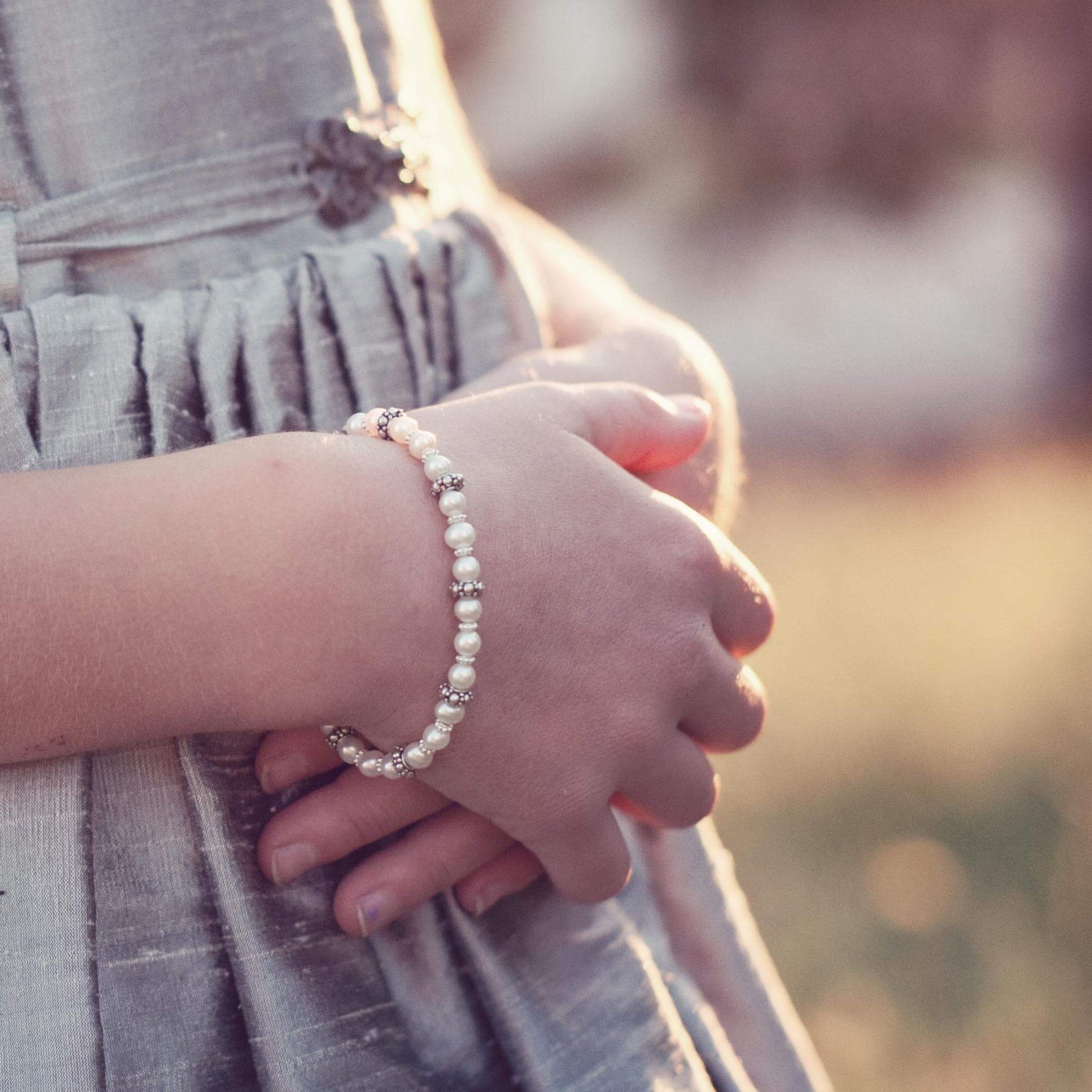 Start her off with a complete pearl set - just like yours - with lots of added shimmer and shine. Twinkling silver daisies and fancy sterling bead accents make this a wonderfully sparkly set, designed to catch the light and wake up your little girl’s smile.