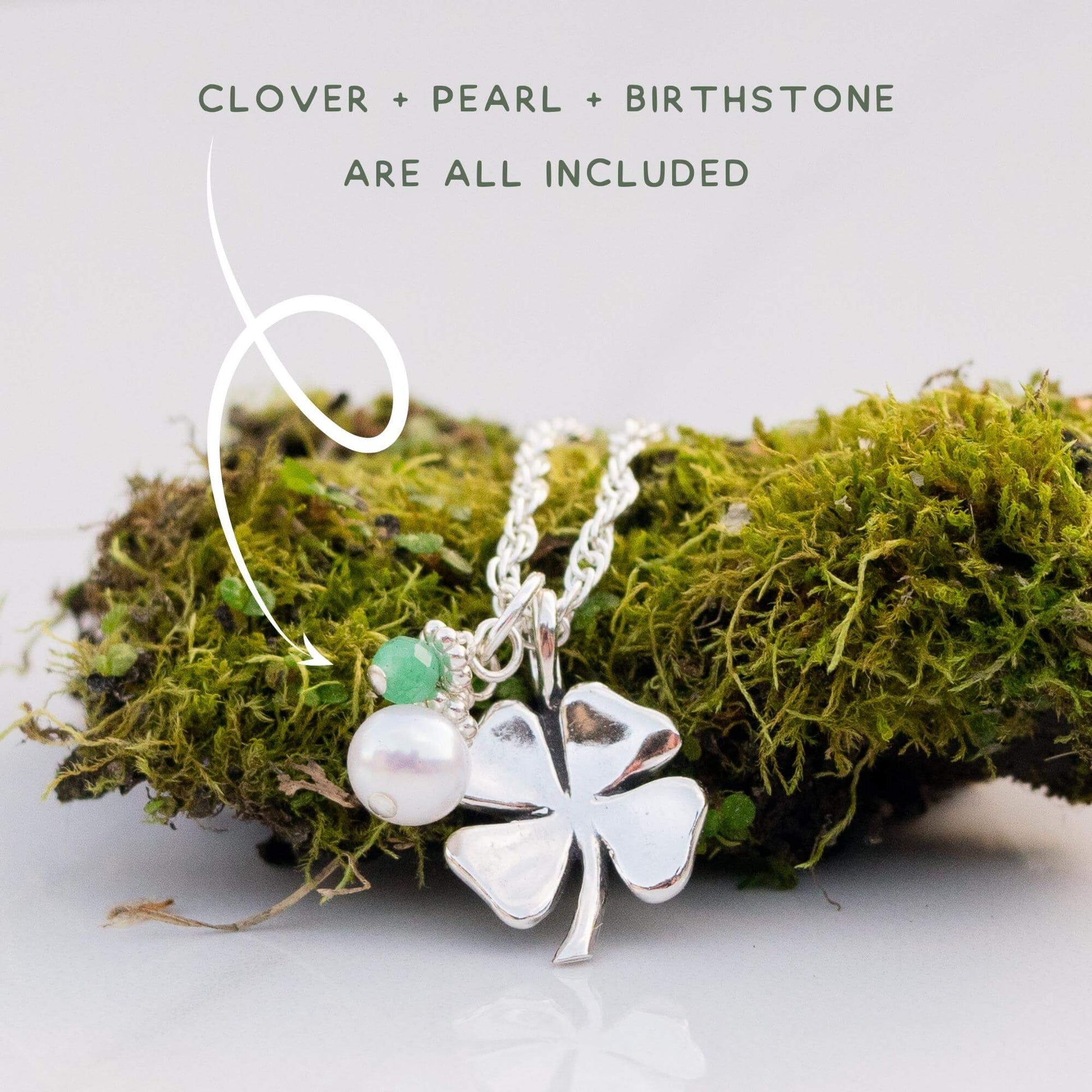 Lucky Clover + Sparkly Birthday Gem Necklace