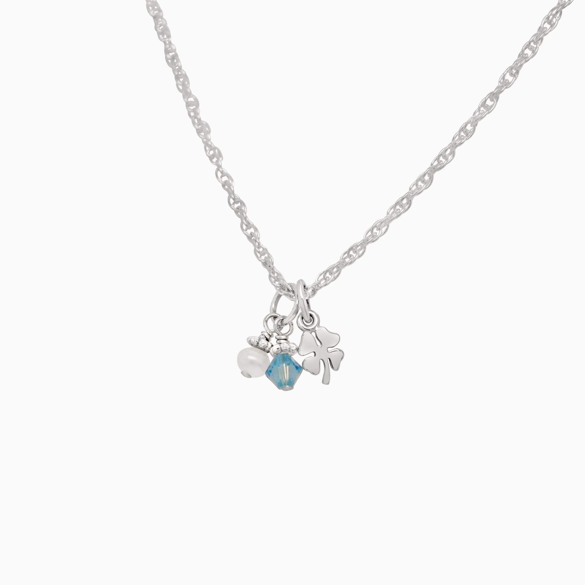 Oh, my goodness. SO TINY! This tiniest lucky clover necklace is part of our teenie tiny line, and it's oh-so-precious. The smallest lucky four-leaf clover charm (measuring an itty bitty 5mm across) lays next to a twinkly birthstone crystal, and a tiny cultured freshwater pearl. It is just the cutest way to remind her that lady luck is on her side through all of her adventures.