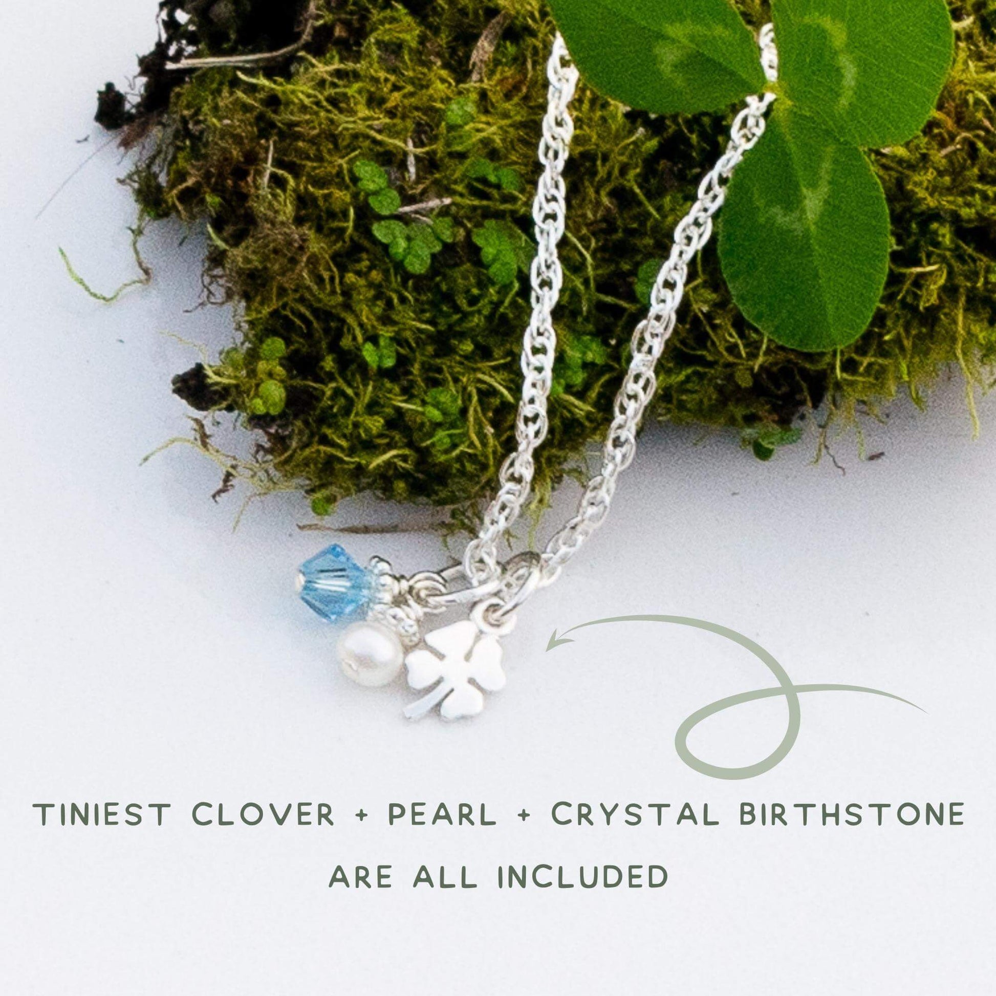 Tiniest Lucky Clover + Sparkly Birthstone Crystal Necklace