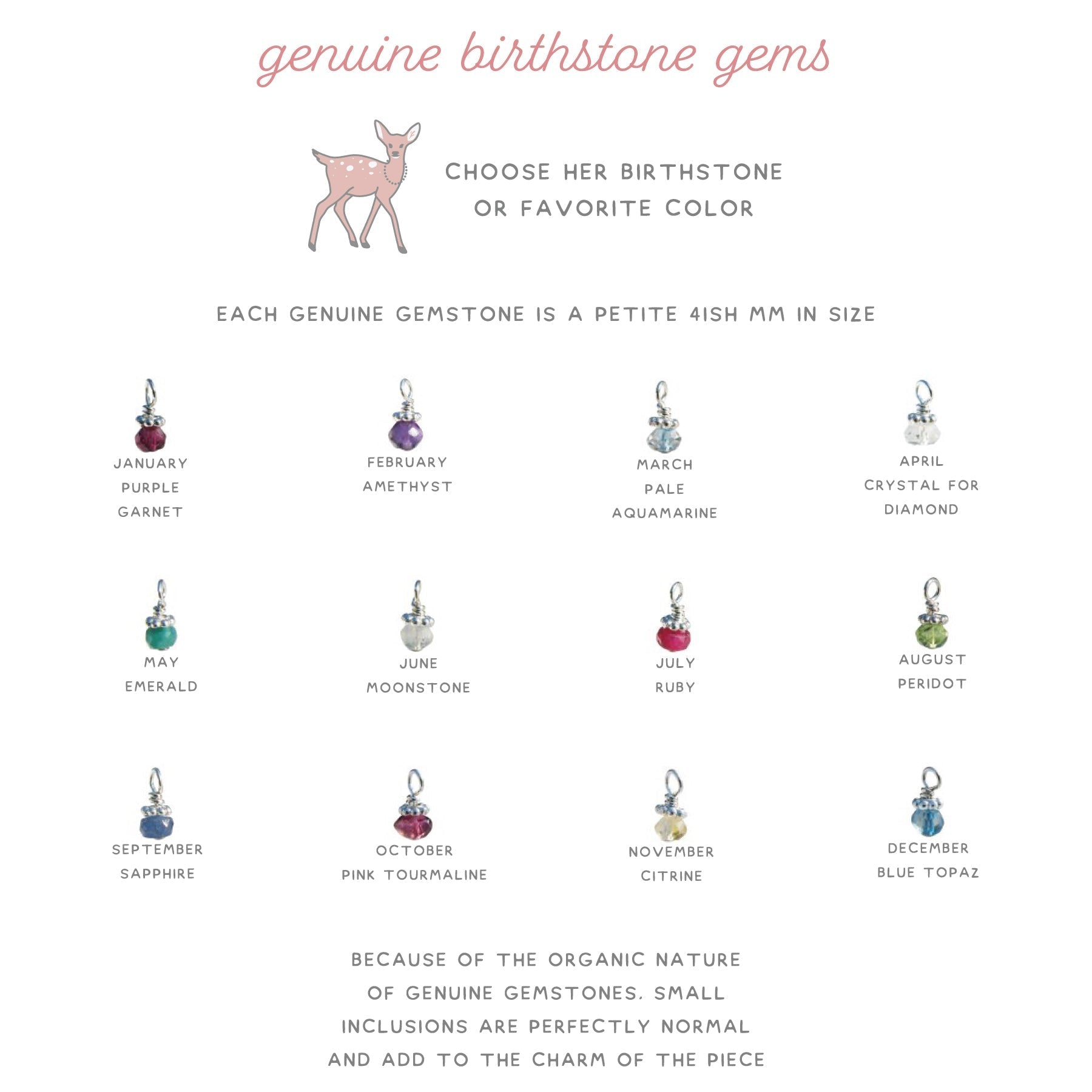 * Please note that the birthstone gemstones are genuine gemstones, so they are all a bit different in size/shape + have inclusions - unique, just like your sweeties are! All mingle together on a single ring.