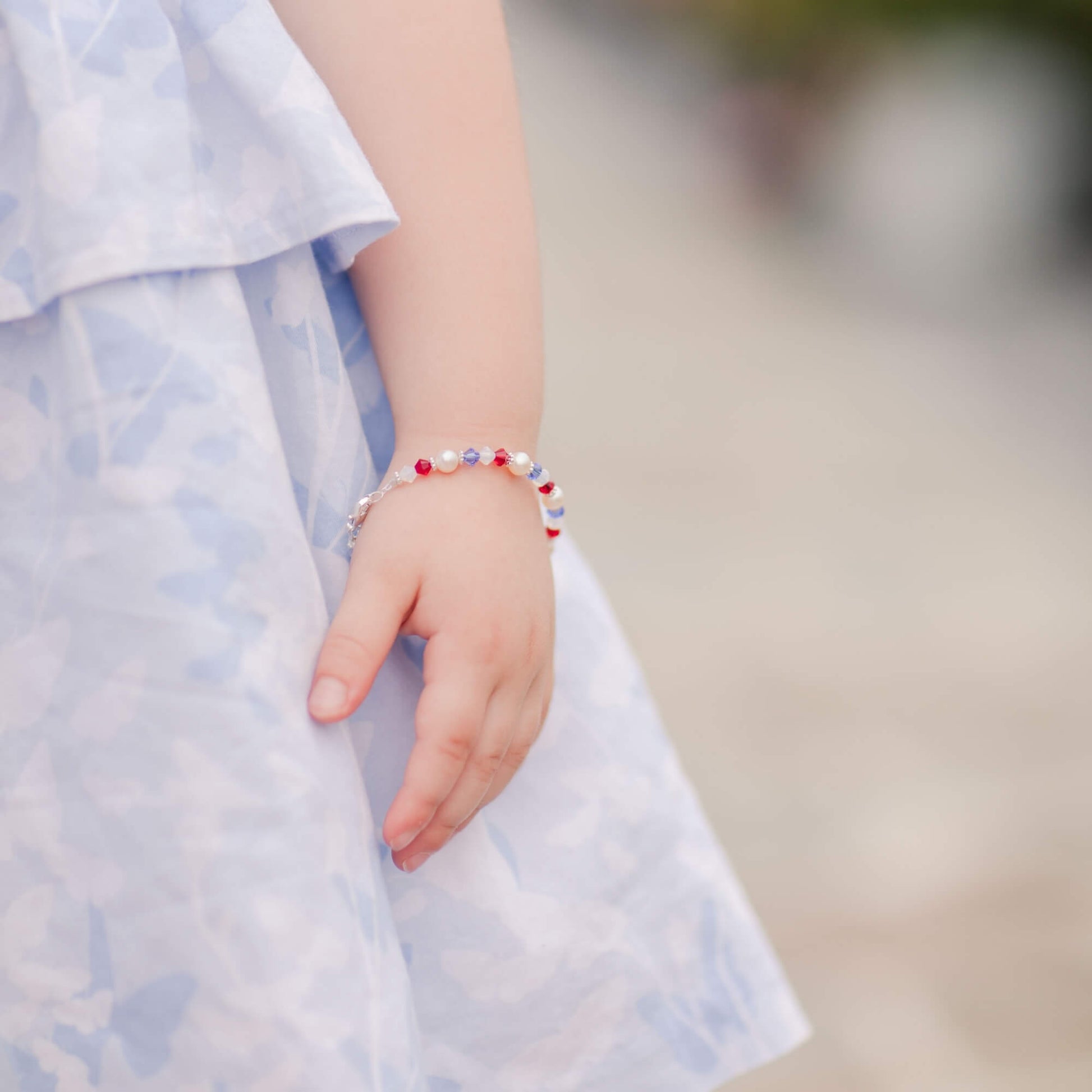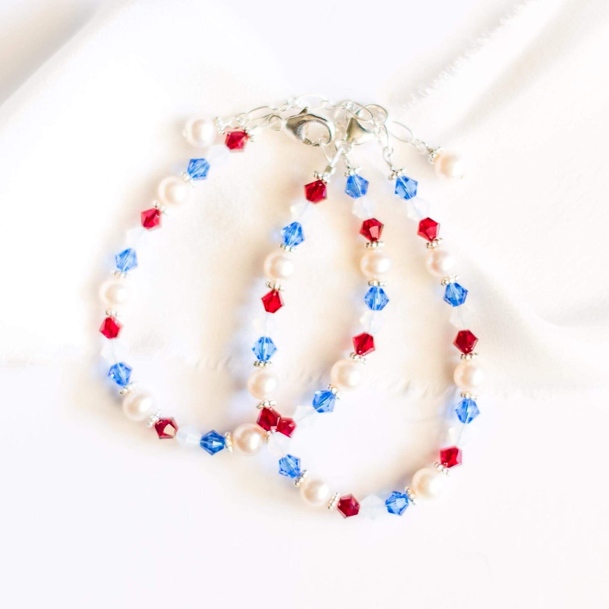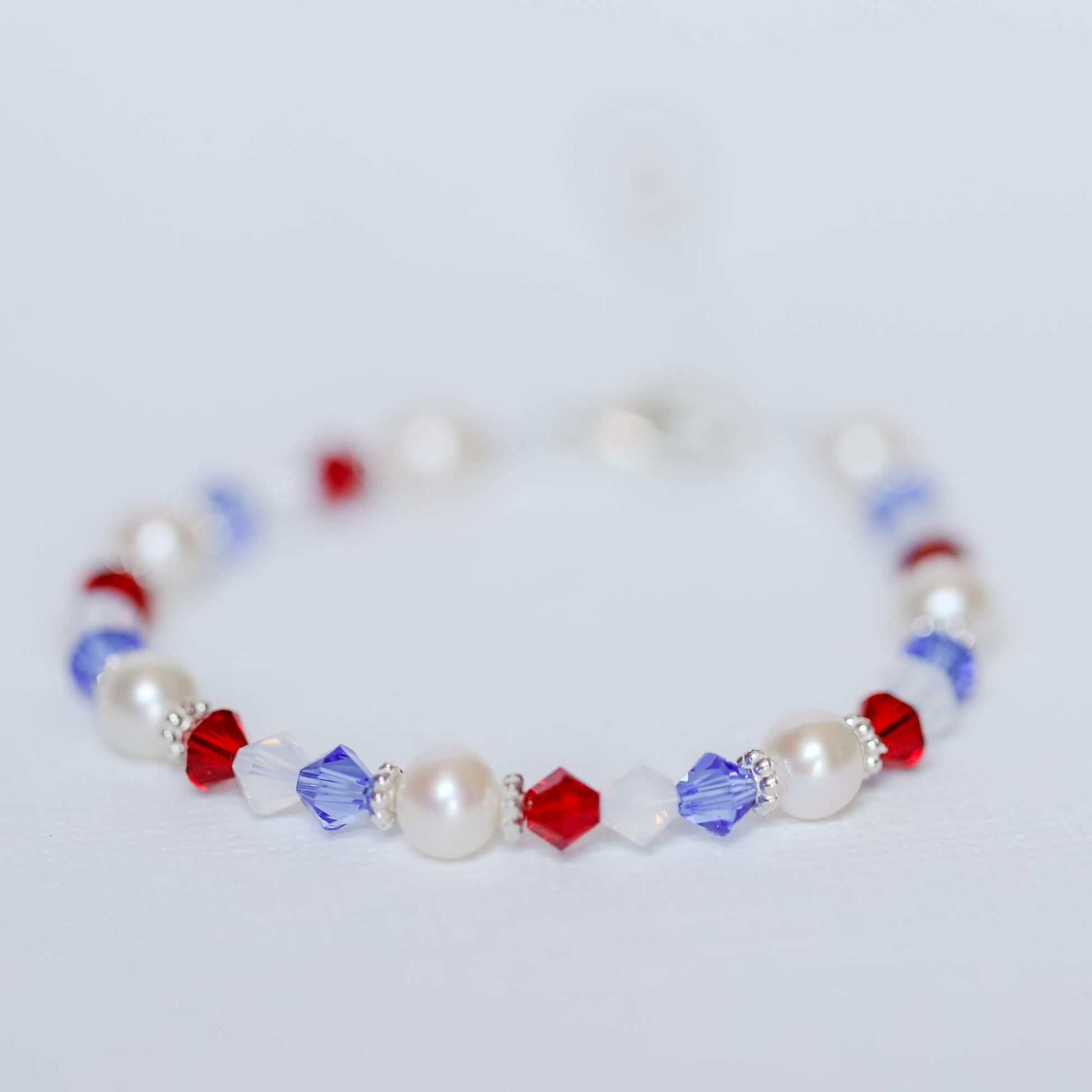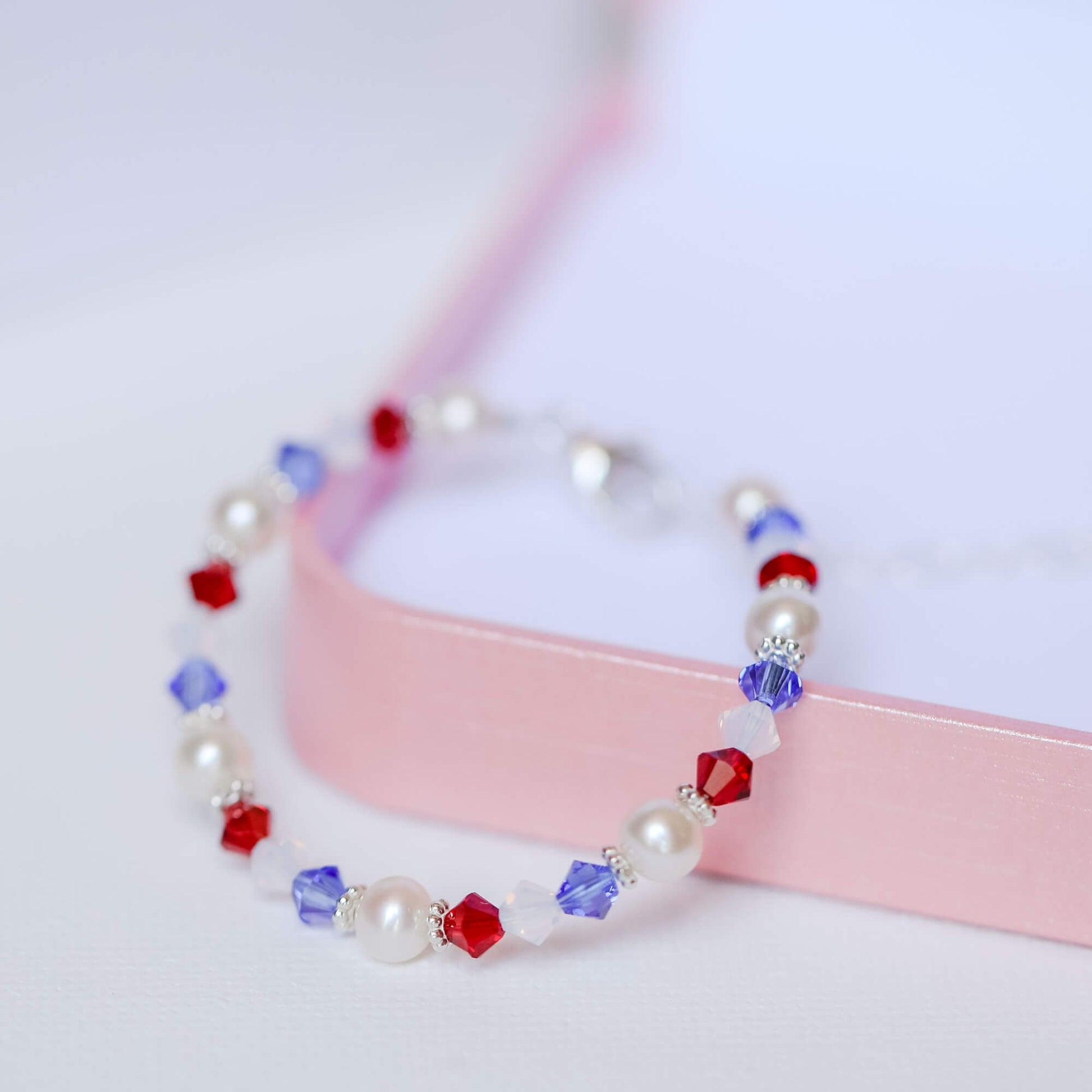 Let's celebrate! Summer is the perfect time to add a little sparkle and joy to your life. When it comes to your summer celebration, you simply can't miss with the enchanting combination of sparkling crystals in vibrant red, white, and blue, beautifully intertwined with creamy pearls. It's a surefire way to elevate your festivities and add a touch of glamour to the season.
