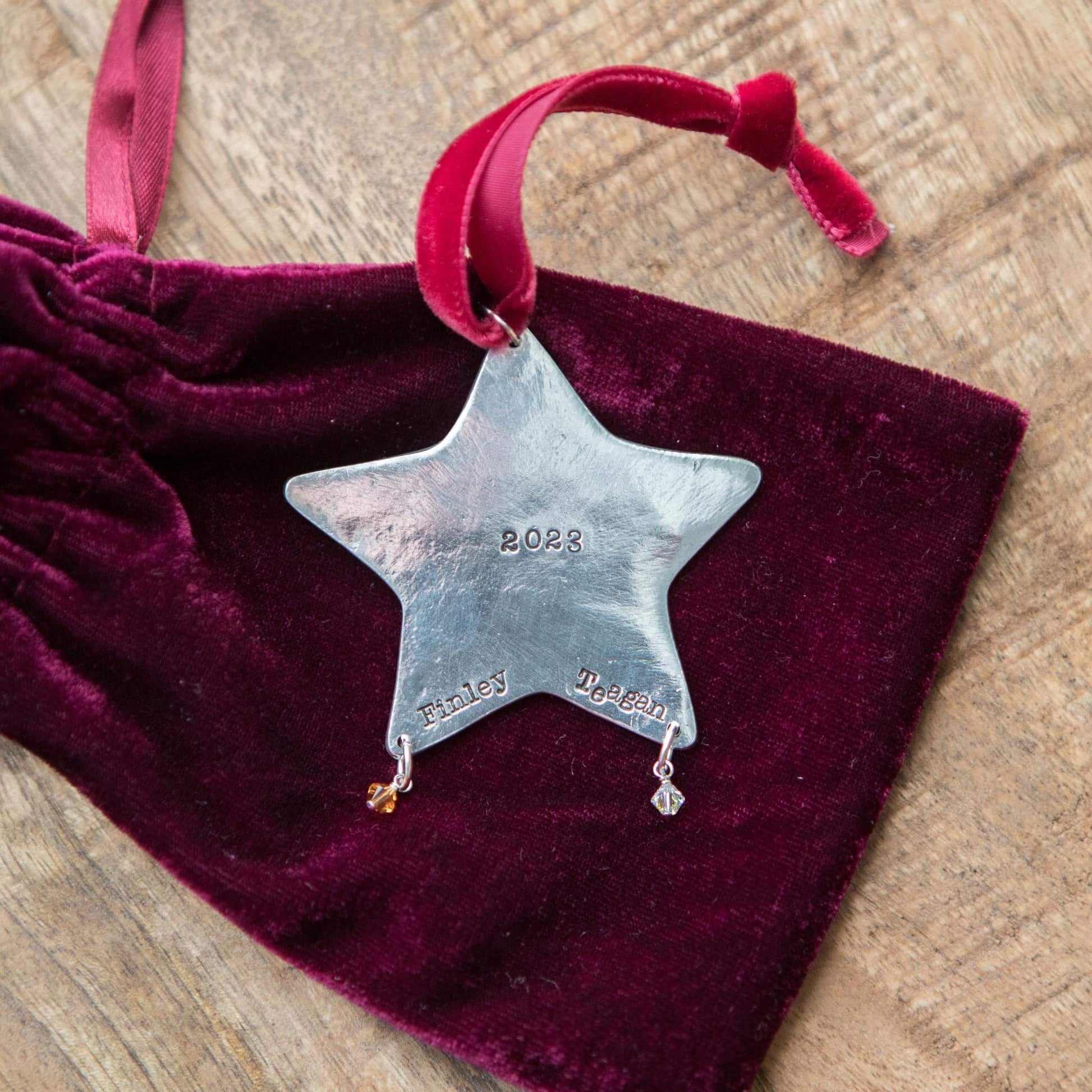 Twinkle Twinkle Christmas Star! What a fun and festive family tradition - a personalized rustic pewter Christmas star ornament.